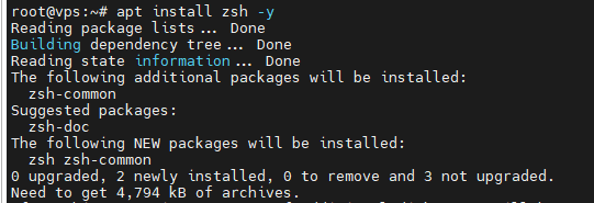 $ sudo apt install zsh -y