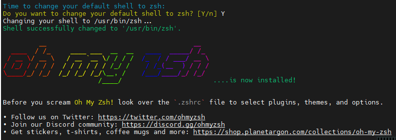 sh -c "$(curl -fsSL https://raw.github.com/ohmyzsh/ohmyzsh/master/tools/install.sh)"