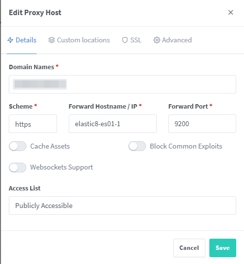 Để có thể vào được Elastic hoặc Kibana, chúng ta cần khai báo nó trong Nginx Proxy Manager: