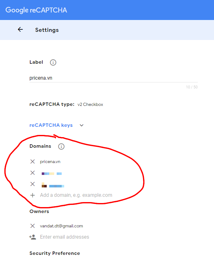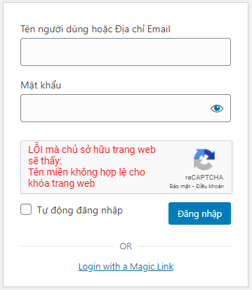 reCAPTCHA: LỖI mà chủ sở hữu trang web sẽ thấy: Tên miền không hợp lệ cho khóa trang web