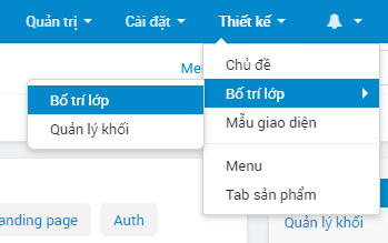 Trong giao diện quản trị Cs cart vào Thiết kế – Bố trí lớp